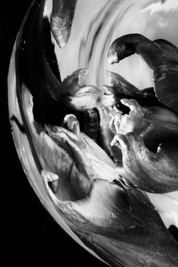 Een serie waar ik met bloemen werk en in korte tijd de vergankelijkheid naar dood laat zien. En vergankelijkheid heeft zowaar ook mooie kanten. Van kleur en vorm. En zelfs nieuwe levens welke zichtbaar werden tijdens het proces. Ik herken hierin gedaantes van dieren en nieuwe levende wezens.